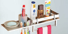 S.S. Multipurpose Shelf Our Products 3 In 1 Shelf With Tumbler & Rod 5771 – ₹ 950 4 In 1 Shelf With Soap Dish & Tumbler 5772 – ₹ 1290 4 In 1 Shelf With Tumbler & LSD 5773 – ₹ 1400 Double Soap Dish 5767 – ₹ 575 Tumbler With Soap Dish 5768 – ₹ 575 Tumbler With Liquid Soap Dispenser 5769 – ₹ 675